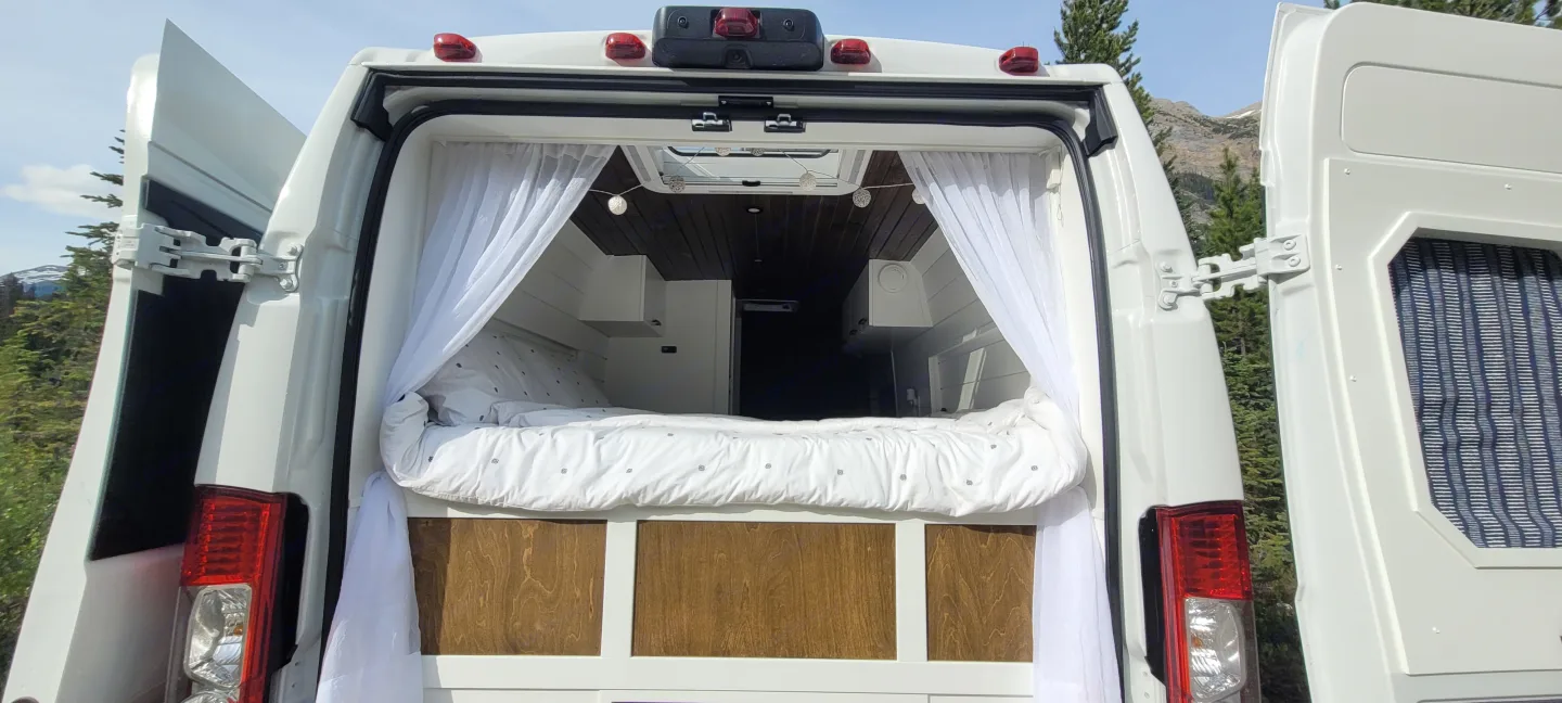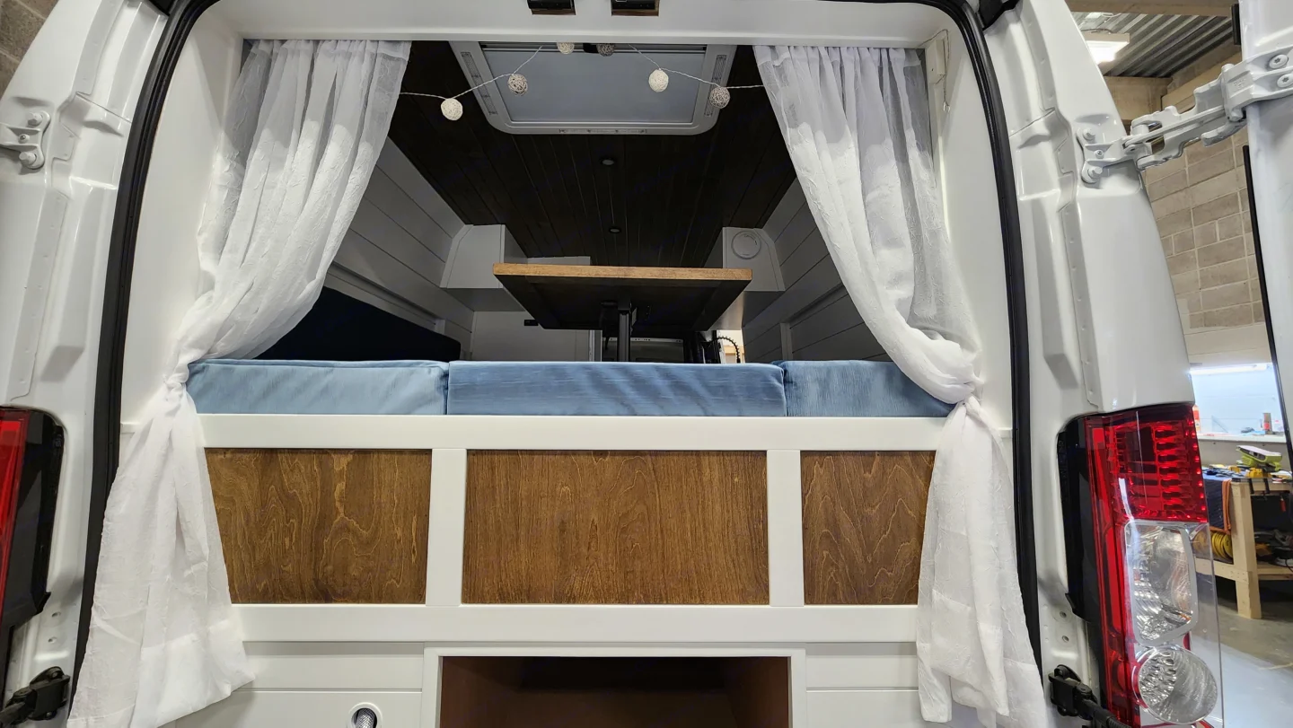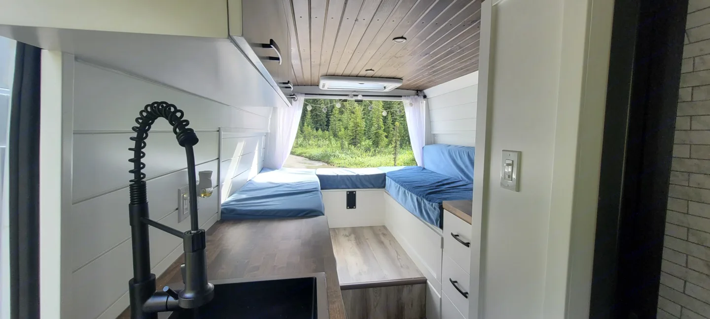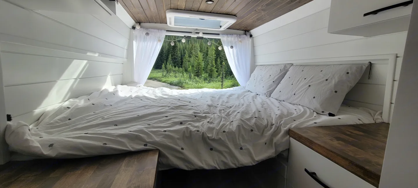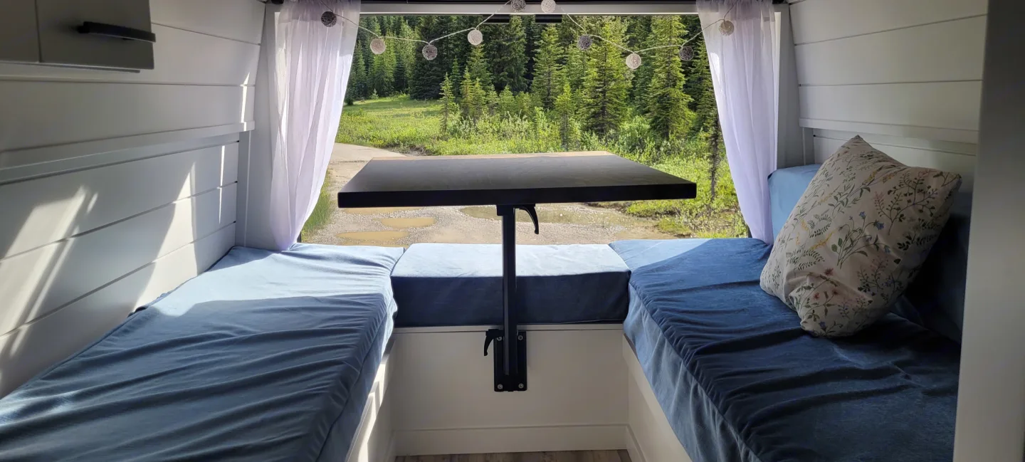 Cozy, custom-crafted van designed for comfort and adventure.